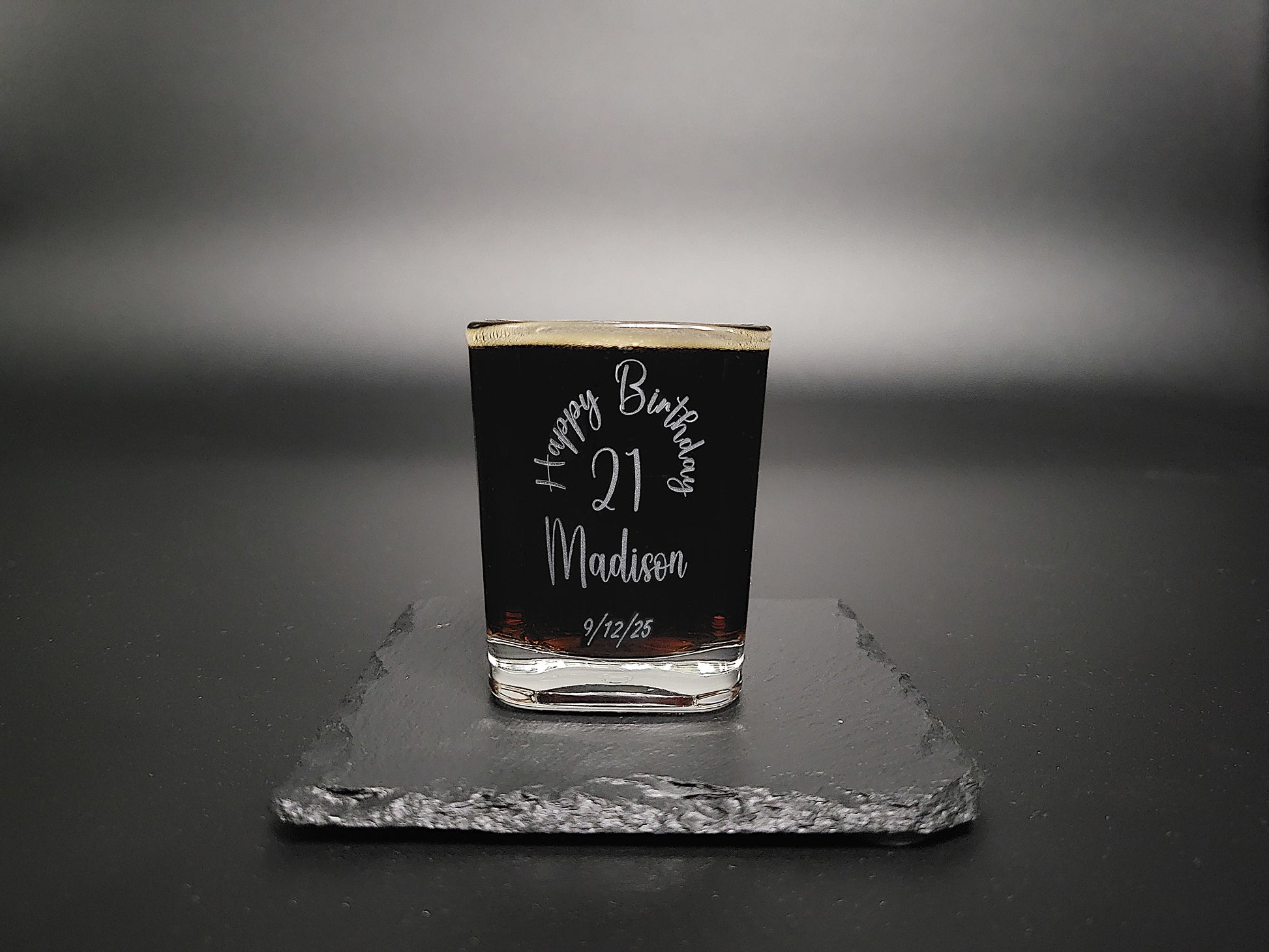 Happy Birthday Engraved Shot Glass – Personlized 2oz Barware